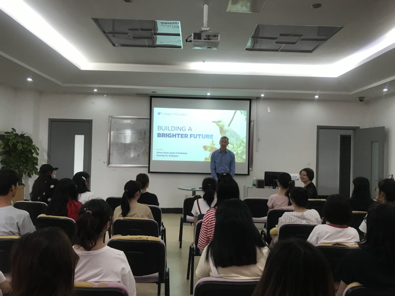 2019年6月11日下午2时20分,由外国语学院主办的美国佛罗里达大学留学培养项目推介沙龙于文南211顺利开展。本次讲座由美国佛罗里达大学教育学院院长GlennE.Good教授担任主讲人,外国语学院执行院长王静萍主持,来自我院大一至大三的多名同学参加了本次讲座。