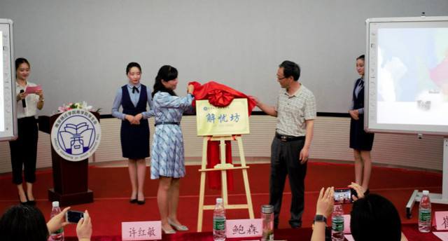 嘉宾为“解忧坊”揭牌内部装饰温馨以贴合心理疾病者需求